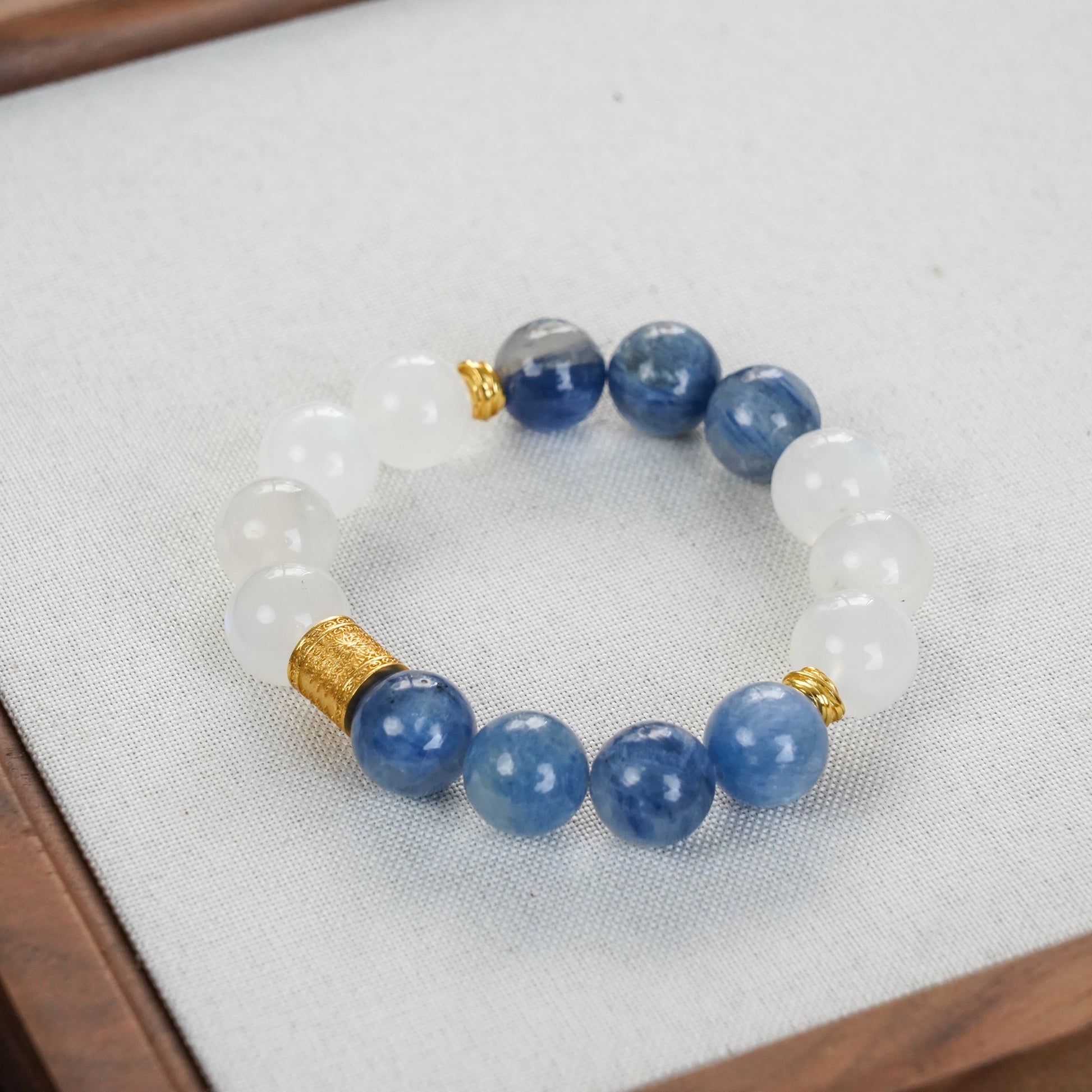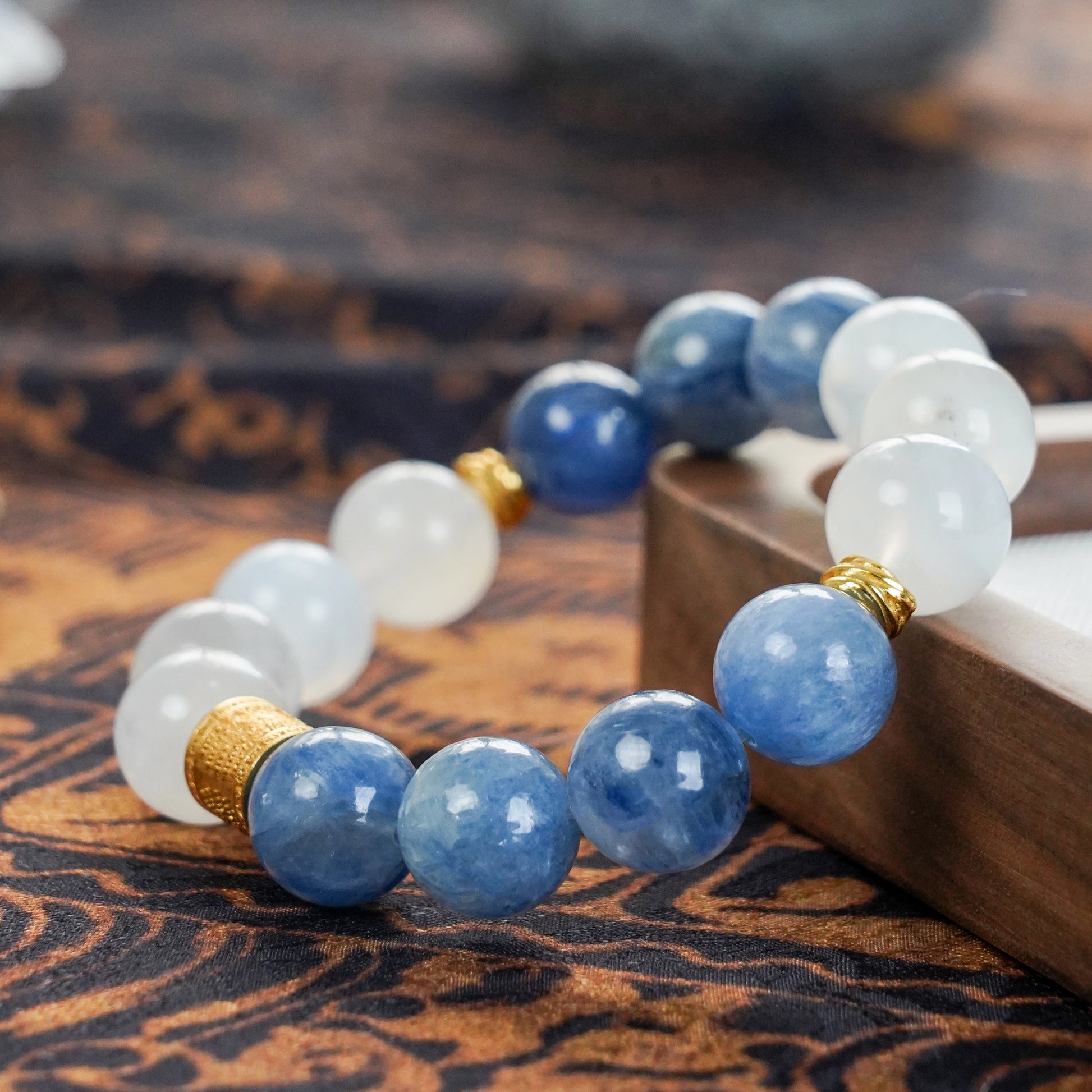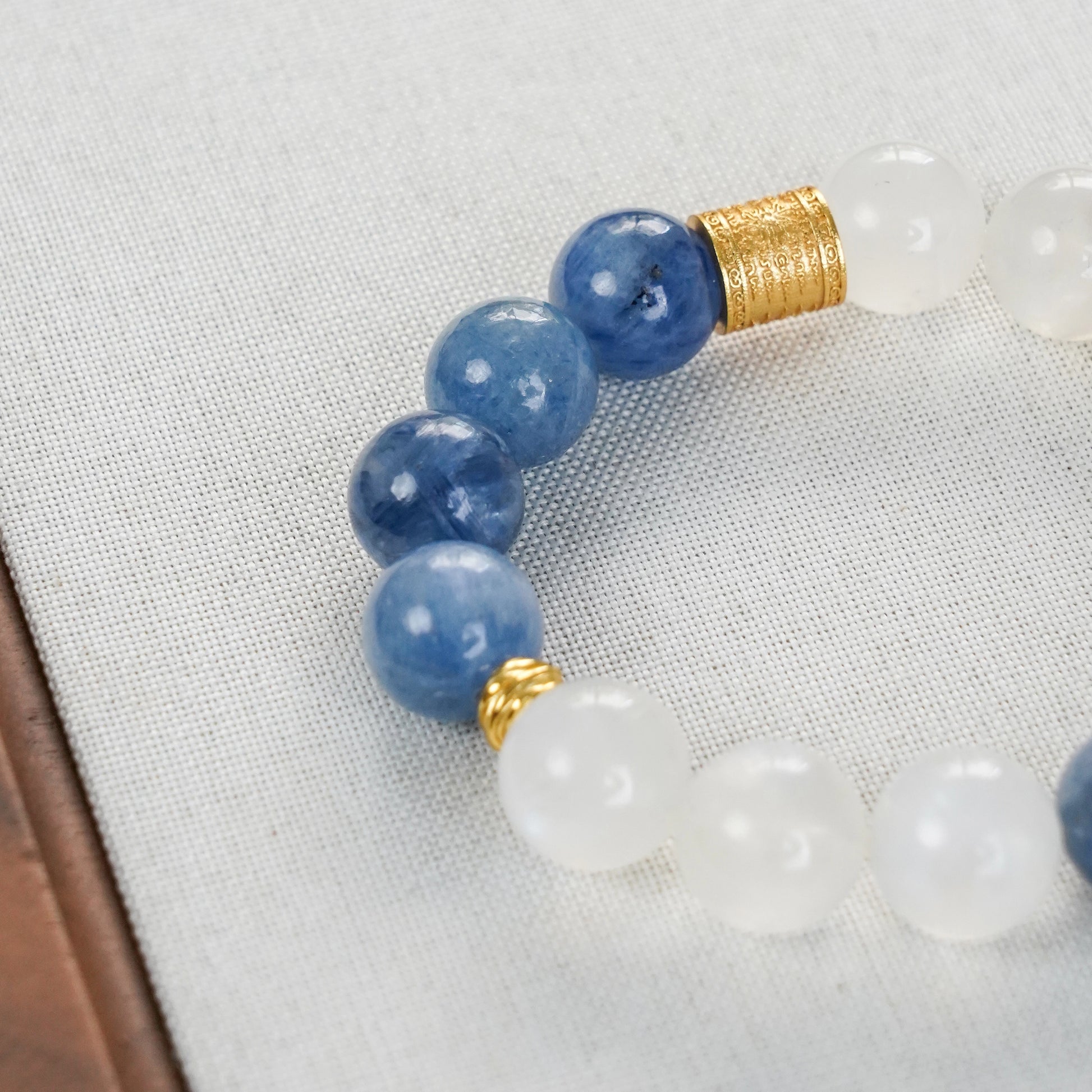 Kyanite & Moonstone Bracelet with Lucky Charms - Communication, Intuition & Protection