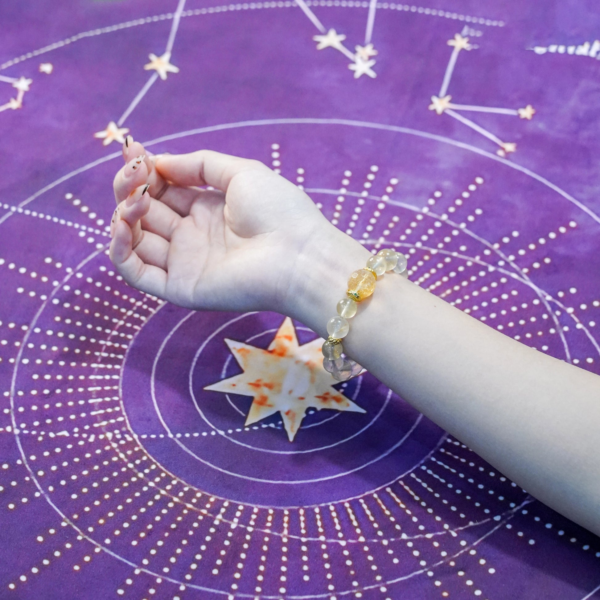 Radiating sunshine and optimism, this 28.1-gram bracelet combines the manifesting power of Lemon Quartz with the creative joy of Fanta Quartz, all set in luxurious gold-plated silver. It is designed to attract prosperity, dissolve negative thinking, and fill your life with vibrant, positive energy.